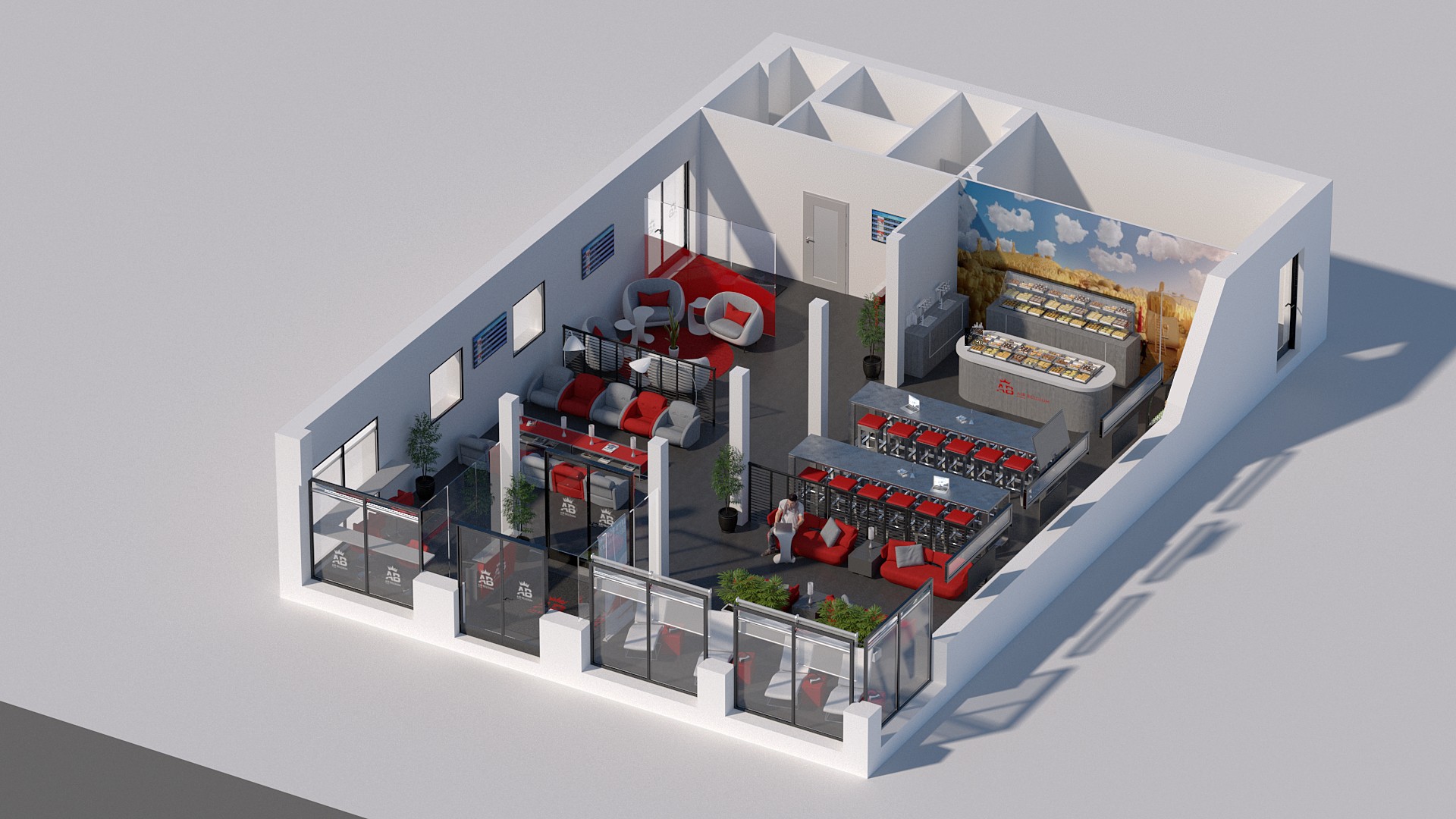 Ce projet consiste en l'aménagement d’un lounge VIP réservé à la clientèle Air Belgium au sein de l’aéroport de Charleroi. Il doit exprimer l'identité de la nouvelle compagnie Aérienne. Bien que restreint, l’espace se divise en trois parties ayant chacune des codes couleurs bien distincts de manière à procurer diverses ambiances aux passagers, en fonction de leurs attentes.